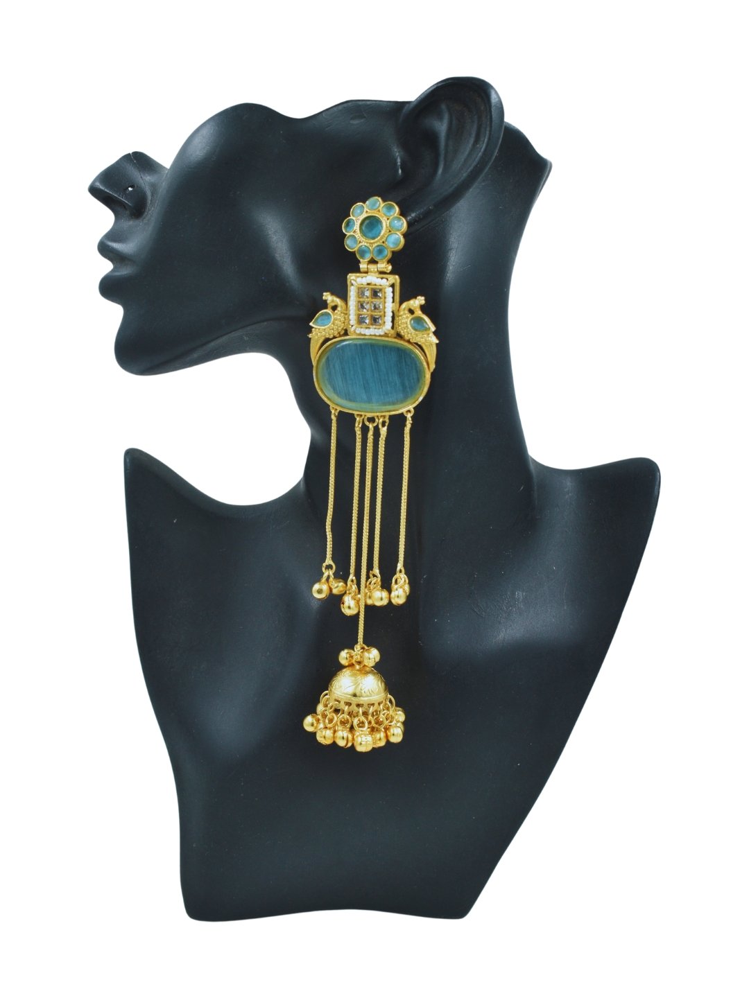 The luxurious gold plating enhances the durability and radiance of these earrings, ensuring they stand out at every occasion. The long, dangling design creates a striking visual statement, gracefully swaying as you move. Whether you’re attending a festive celebration, wedding, or any special event, the understated sheen and intricate detailing of these earrings will elevate your ensemble effortlessly. Their lightweight design ensures comfort for extended wear, making them both glamorous and practical.