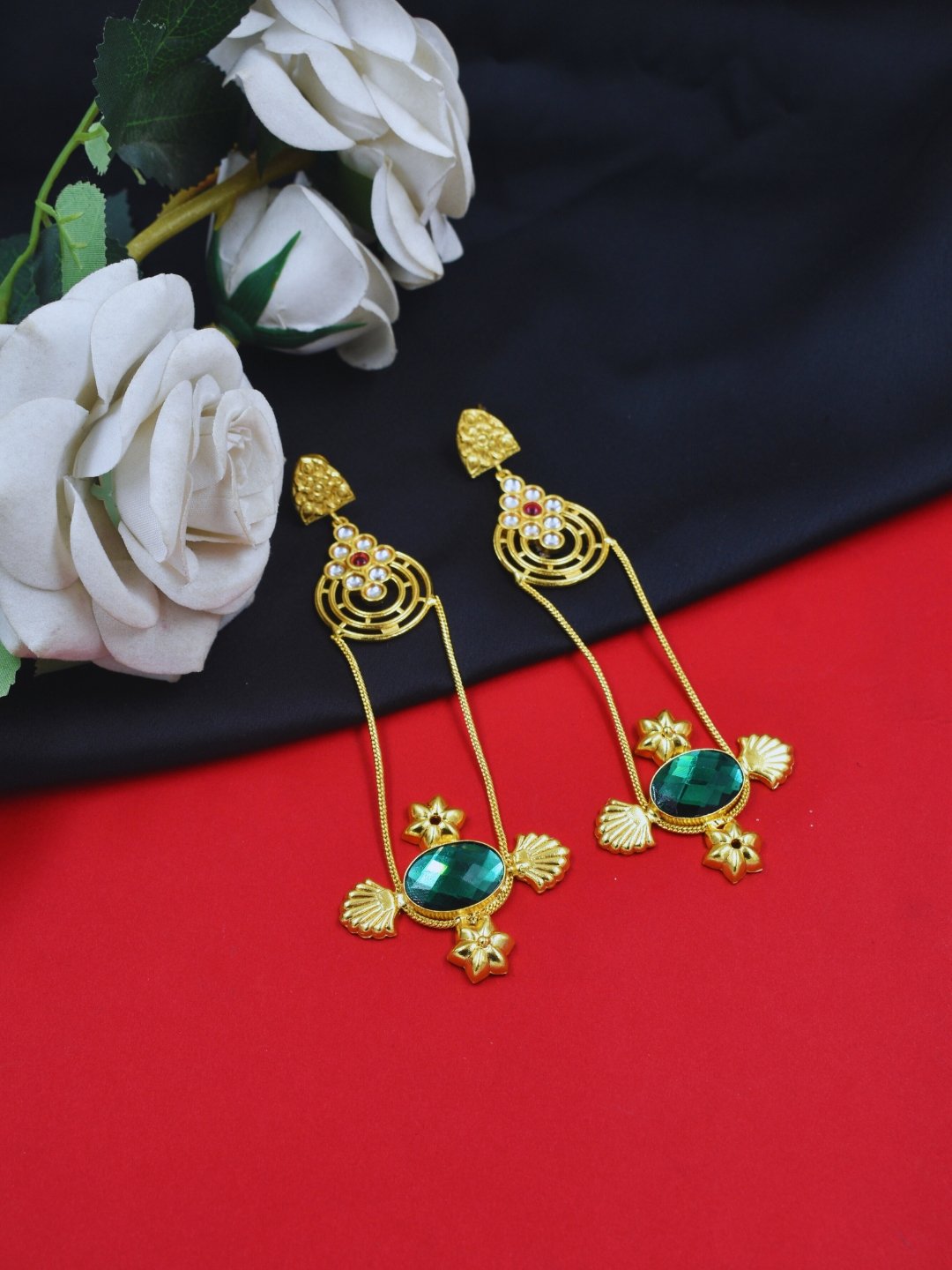 The luxurious gold plating enhances the durability and radiance of these earrings, ensuring they stand out at every occasion. The long, dangling design creates a striking visual statement, gracefully swaying as you move. Whether you’re attending a festive celebration, wedding, or any special event, the understated sheen and intricate detailing of these earrings will elevate your ensemble effortlessly. Their lightweight design ensures comfort for extended wear, making them both glamorous and practical.