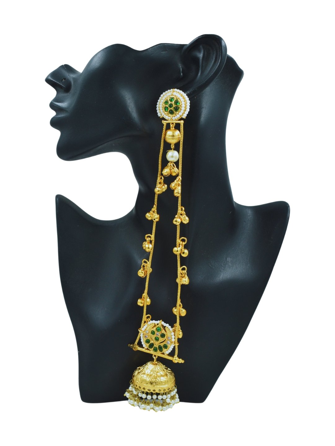 Beautiful Handmade Long Gold Plated Kashmiri Earring Embellished with Ghungroo