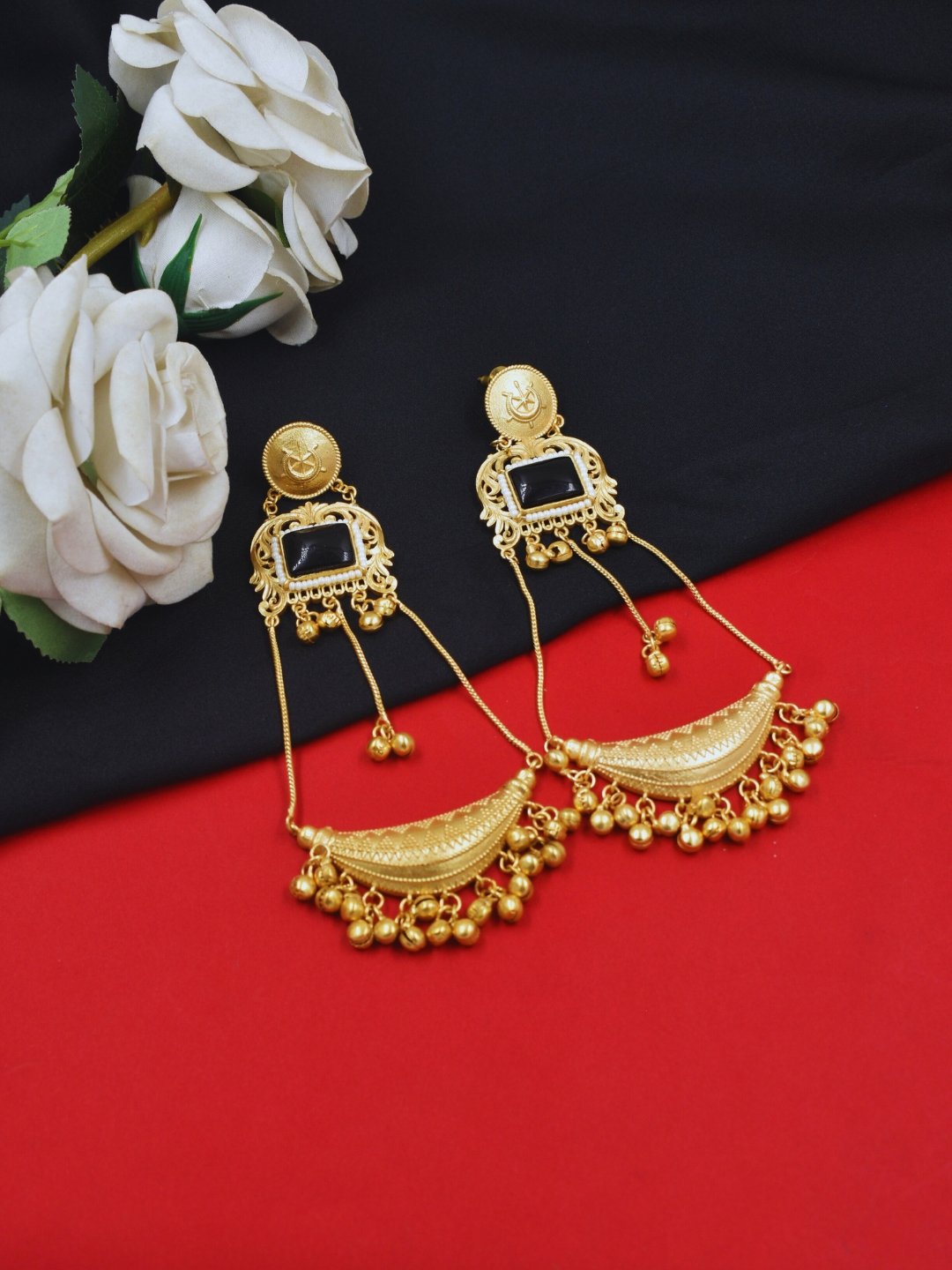 The luxurious gold plating enhances the durability and radiance of these earrings, ensuring they stand out at every occasion. The long, dangling design creates a striking visual statement, gracefully swaying as you move. Whether you’re attending a festive celebration, wedding, or any special event, the understated sheen and intricate detailing of these earrings will elevate your ensemble effortlessly. Their lightweight design ensures comfort for extended wear, making them both glamorous and practical.