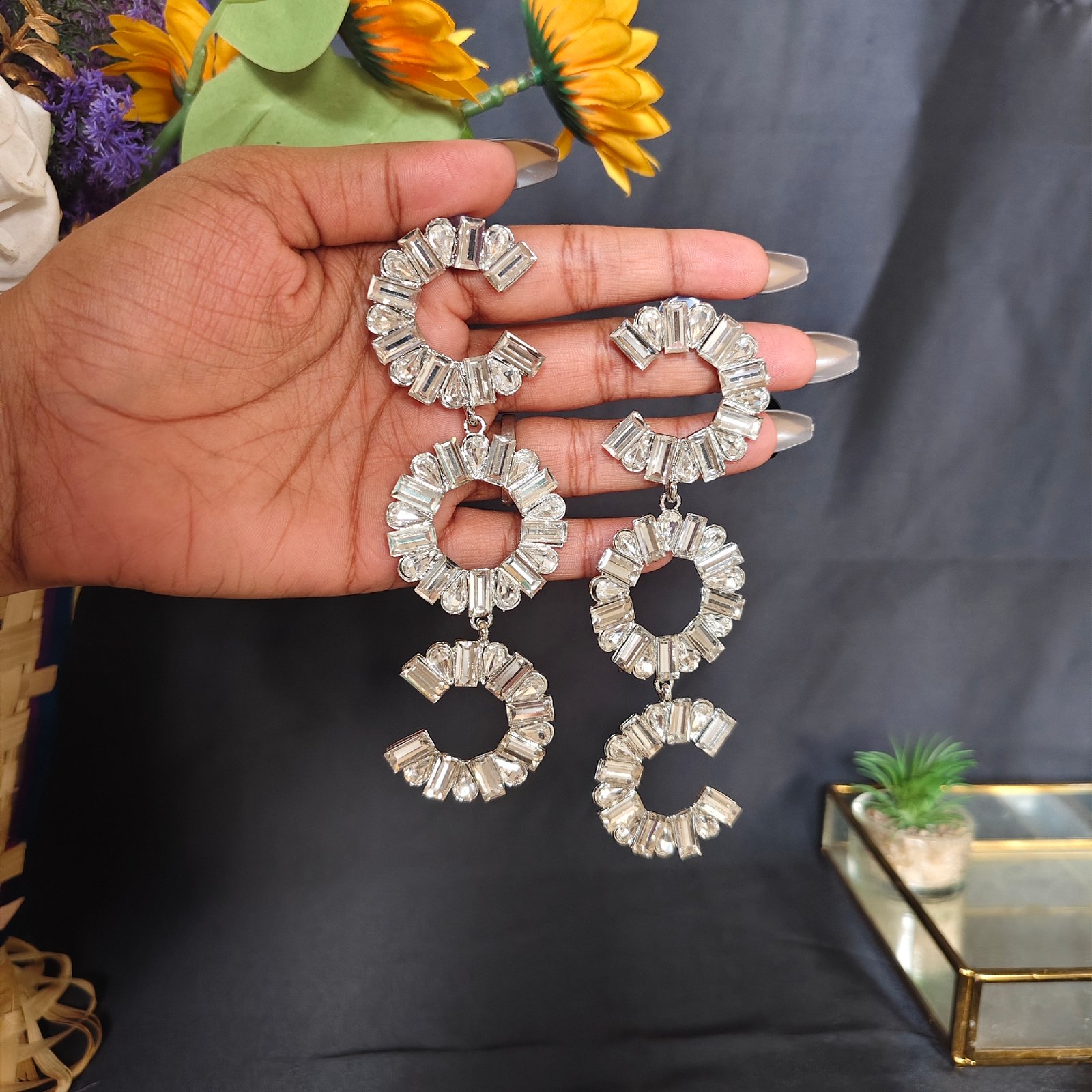 Elevate Your Style with Long Layered Earrings Embellished with Mirror Stones