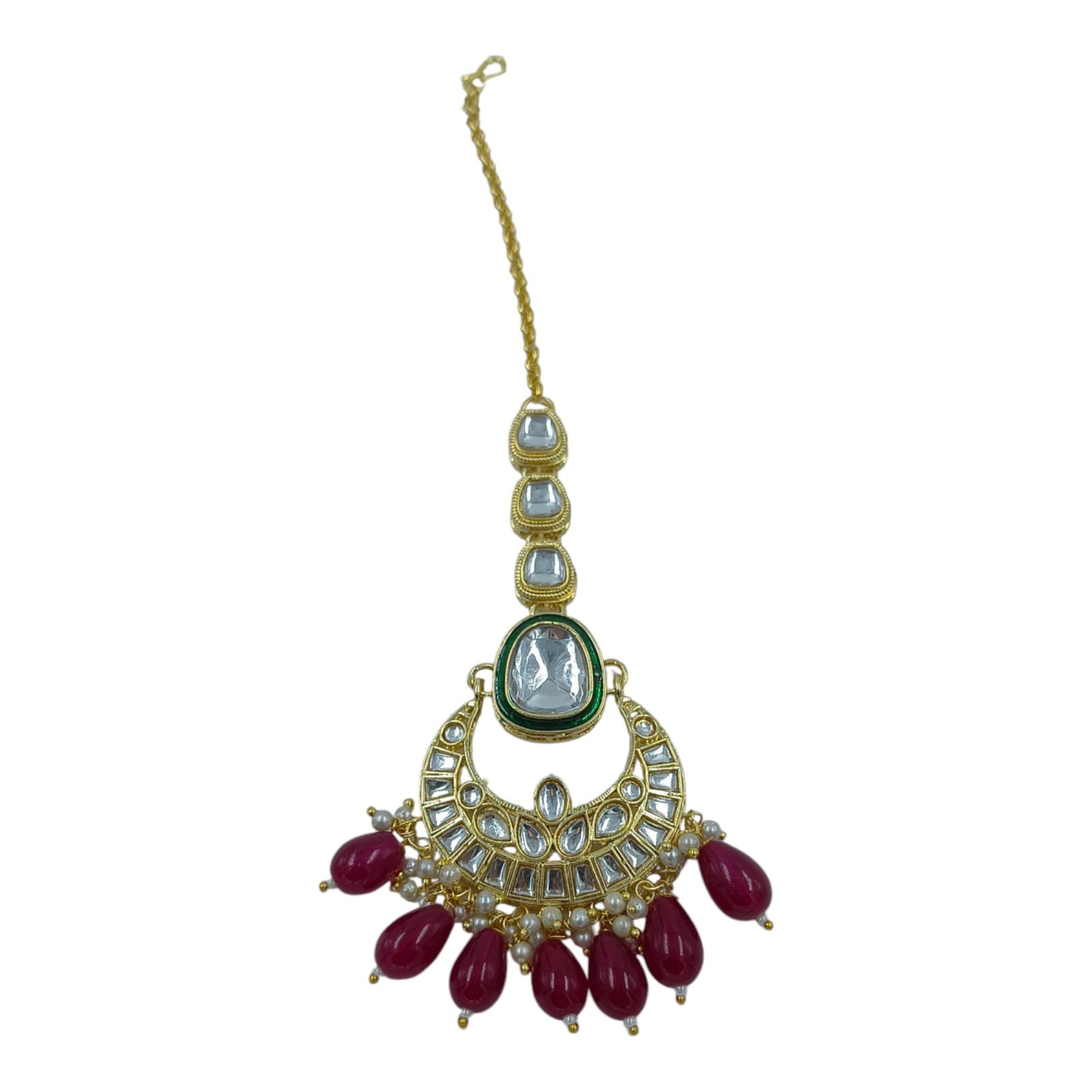 Jewellery, Indian, Necklace Set- Complete Bridal Set: Includes a stunning choker necklace, matching earrings, and a traditional maangtika for a cohesive bridal look.