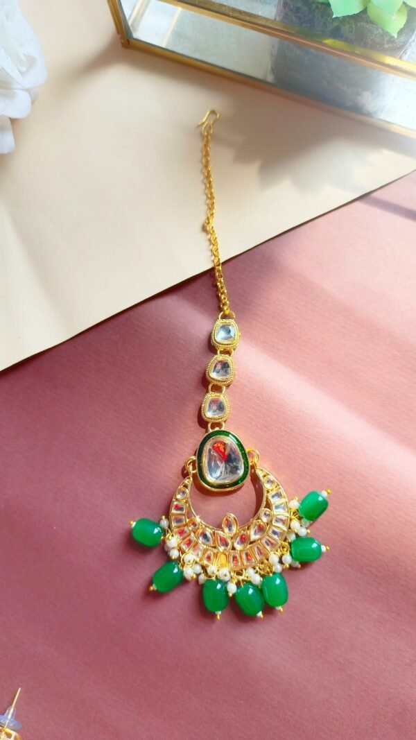 Exquisite Bridal Polki Choker Set with Matching Earrings & Maangtika