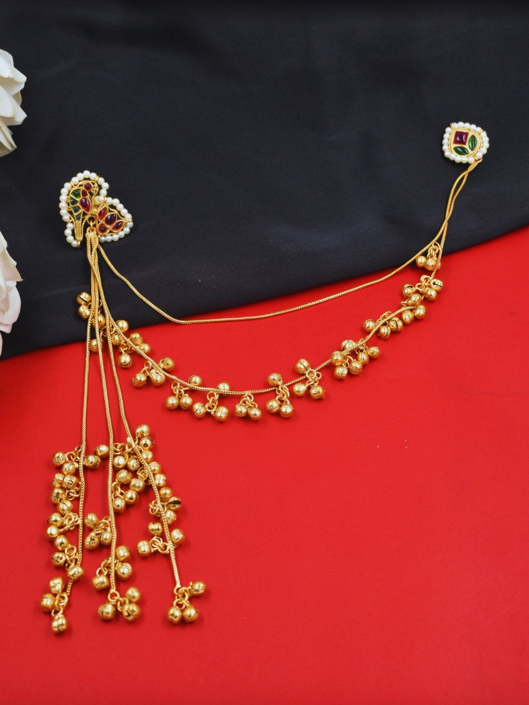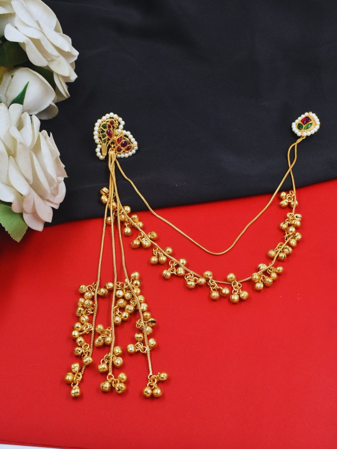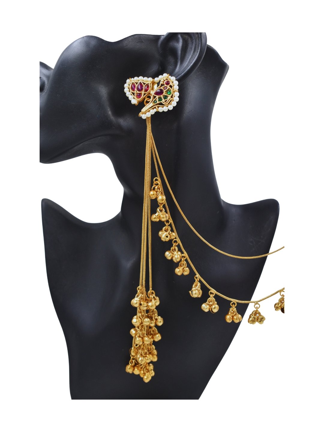 The luxurious gold plating enhances the durability and radiance of these earrings, ensuring they stand out at every occasion. The long, dangling design creates a striking visual statement, gracefully swaying as you move. Whether you’re attending a festive celebration, wedding, or any special event, the understated sheen and intricate detailing of these earrings will elevate your ensemble effortlessly. Their lightweight design ensures comfort for extended wear, making them both glamorous and practical.