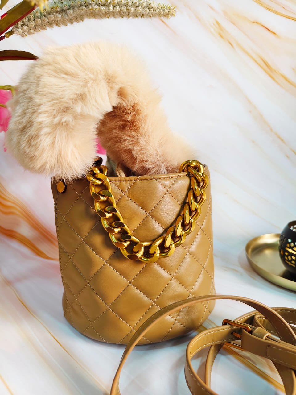 Stay cozy and stylish this winter with this premium leatherette handbag featuring a luxurious fur accent for a chic winter vibe. Designed with a soft, detachable potli pouch inside, this bag offers versatile functionality and elegant aesthetics. Perfect for casual outings, parties, or evening events, the handbag’s durable leatherette exterior ensures long-lasting use while the fur detailing adds a touch of glamour. Practical and fashionable, it’s the perfect accessory for the winter season.